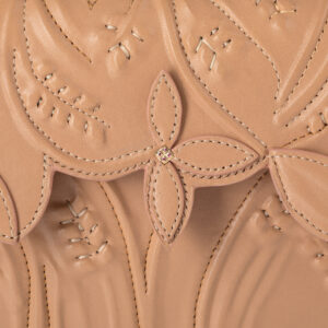 Kabelka Florescent je jako Boticelliho Zrození Venuše. Stejně jako její tělo, tak i květ kabelky stojí přesně uprostřed a tvoří pomyslný pilíř mezi nebem a zemí – spojnice duchovna a hmoty. Střed kabelky zdobí zlatý šperk s říční perlou, usazenou do žlábku ve tvaru ženského lůna. Je jaro a vše je nové a svěží jako okvětní plátky růží, které zachytávají kapky lásky padající z nebe.