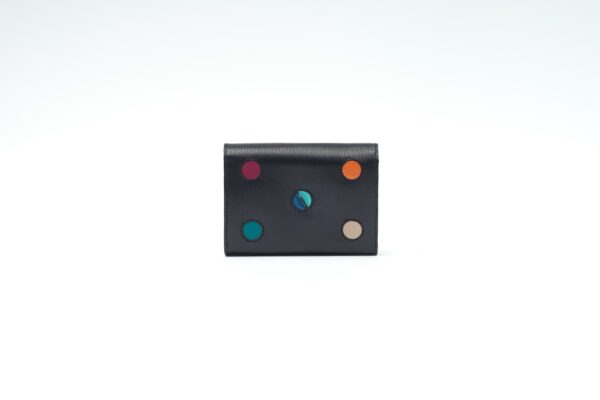 Doplněk se inspiruje slavnou vilou Schminke – ikonou hravého a melodického funkcionalismu. Struktura kůže evokuje její stěny, barevné body připomínají kulatá okna a rozehrávají dynamiku kruhu, zásadního prvku vily. Cesta do útrob peněženky vede přes kruhové stříbrné zapínání – jako kdybyste chtěli uchopit chromovou kliku a vstoupit do slavné vily. Interiér je stejně důležitý jako exteriér.